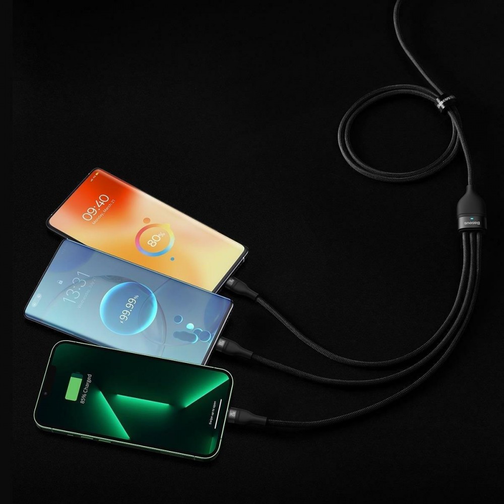 Καλώδιο φόρτισης USB Type-C που διαθέτει προσαρμογέα USB Type-A και 3 βύσματα, ιδανικό για τη φόρτιση δημοφιλών ηλεκτρονικών συσκευών όπως τηλέφωνα, λάμπες και μικρούς ανεμιστήρες. Κατασκευασμένο από υλικά υψηλής ποιότητας, σχεδιασμένο για φόρτιση έως 100 W, παρέχει προστασίες για να αποτρέπει την υπερθέρμανση και τη φθορά.