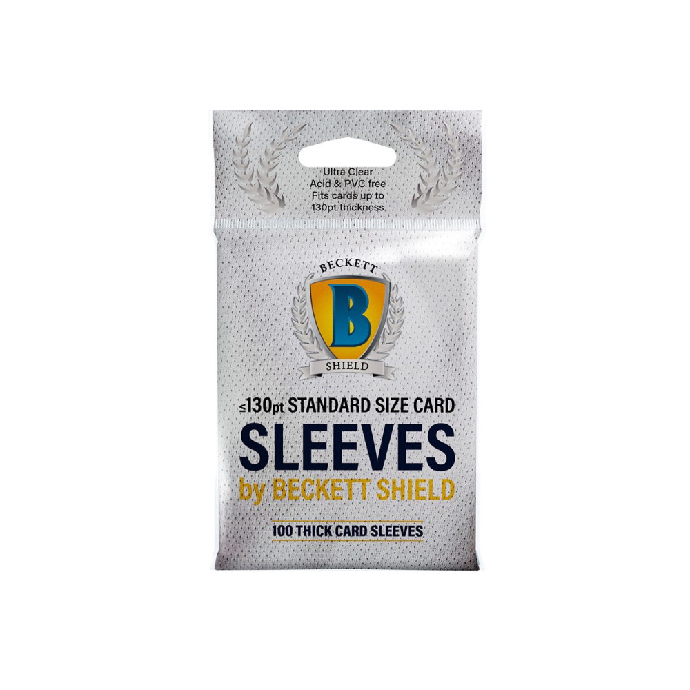 Τα Beckett Shield Standard Size Card Sleeves αποτελούν ιδανική επιλογή για συλλέκτες και επαγγελματίες που θέλουν αξιόπιστη προστασία για τις κάρτες τους. Σχεδιασμένα για κάρτες έως 130pt πάχος, προσφέρουν απόλυτη διαφάνεια και ασφαλή αποθήκευση.