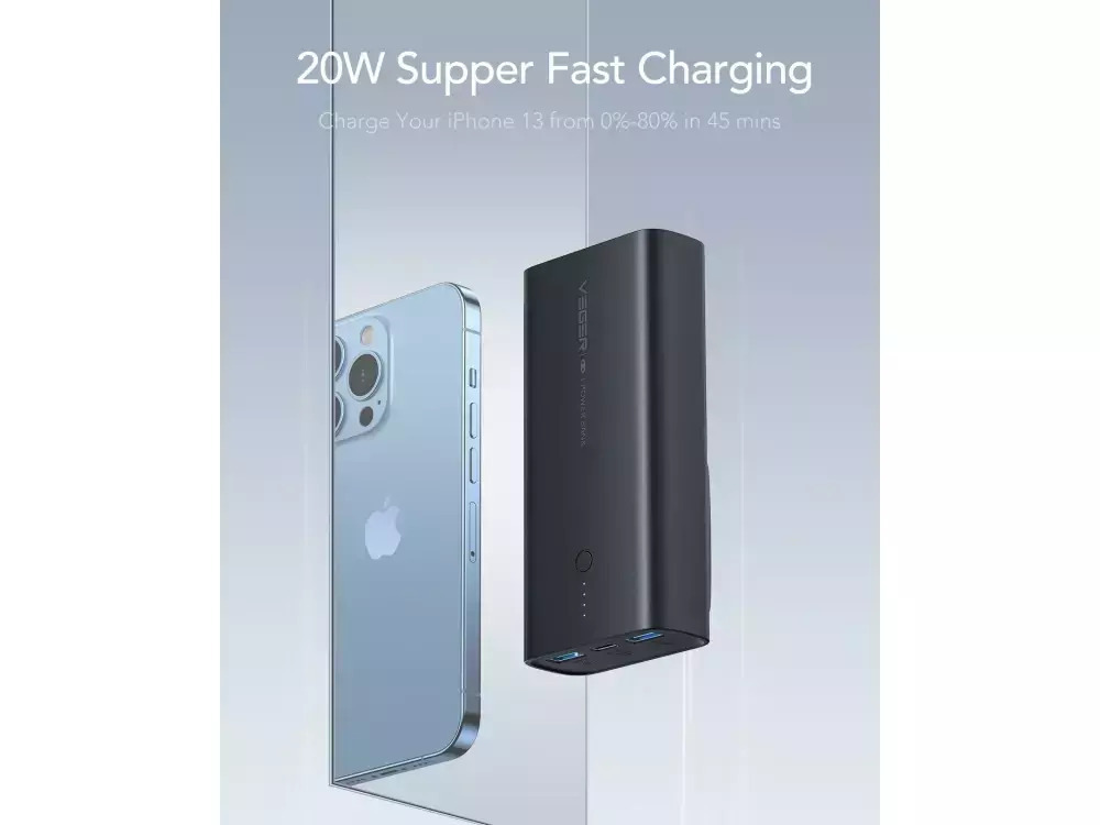 Το power bank της Veger έχει χωρητικότητα 10000mAh που μπορεί να προσφέρει περίπου 2 φορτίσεις σε ένα συνηθισμένο κινητό τηλέφωνο.