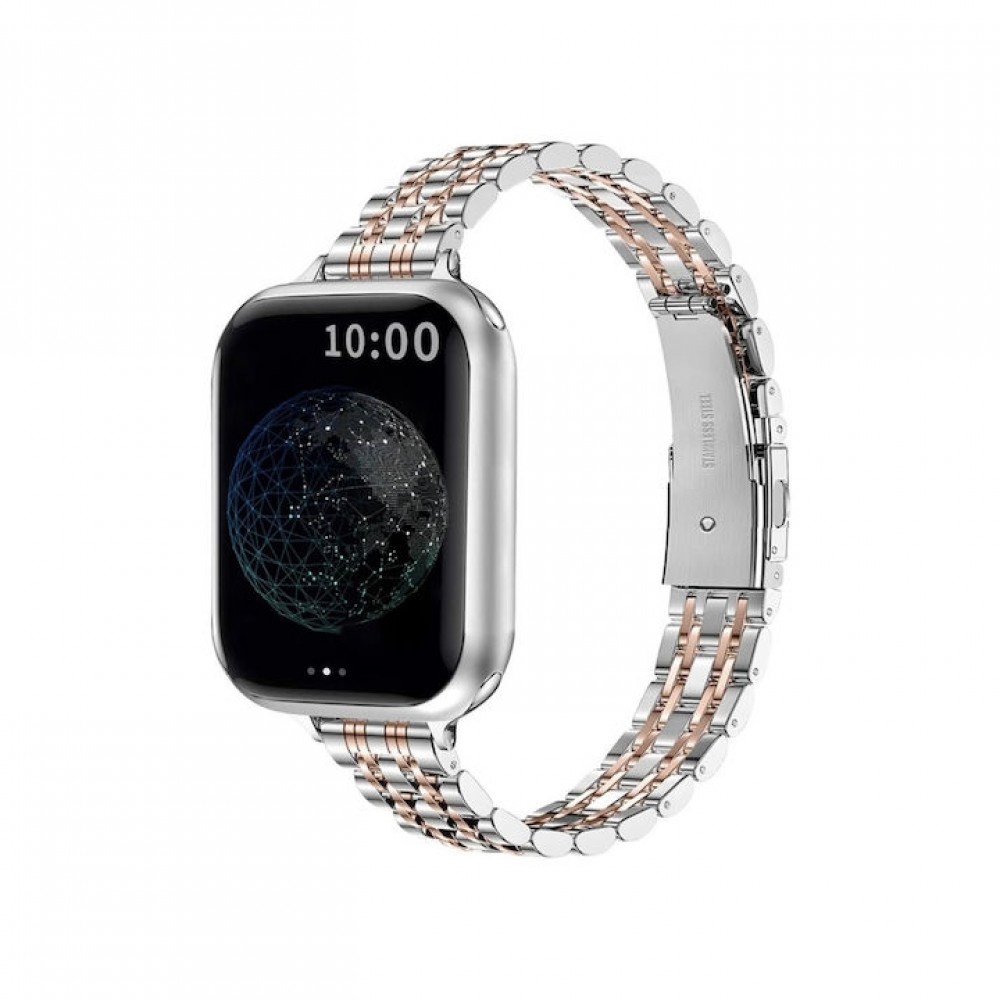 Ανανεώστε το στυλ του Apple Watch σας με αυτό το κομψό λουράκι από ανοξείδωτο ατσάλι, σε ασημί και ροζ χρυσό χρωματικό συνδυασμό. Είναι ειδικά σχεδιασμένο για να ταιριάζει απόλυτα με τα μοντέλα Apple Watch 38mm, 40mm και 41mm, προσφέροντας άνεση και ανθεκτικότητα, ιδανικό για καθημερινή χρήση αλλά και επίσημες περιστάσεις.