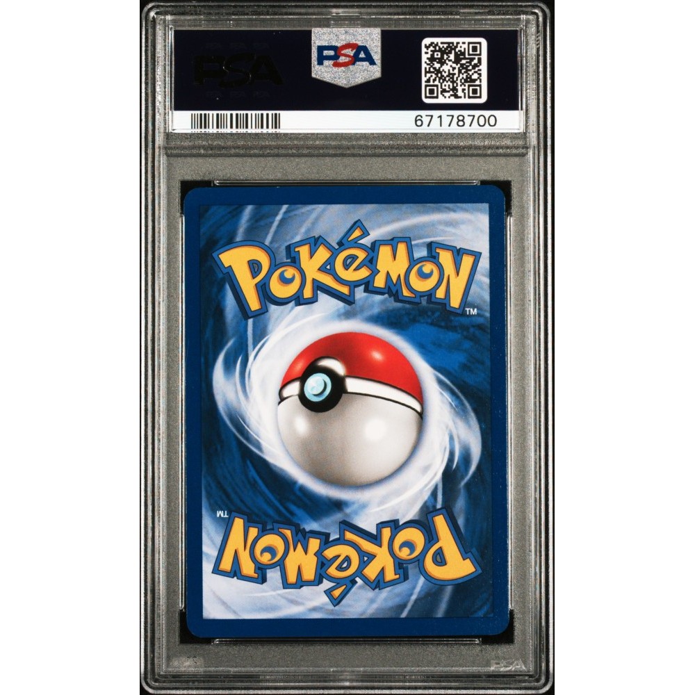 Βαθμολογημένη με PSA GEM MT 10, η κάρτα βρίσκεται στην απόλυτη κορυφή της κλίμακας ποιότητας, χωρίς εμφανή ψεγάδια σε επιφάνεια, γωνίες ή κέντραρισμα—πραγματικό κόσμημα για σοβαρούς συλλέκτες WotC εποχής.