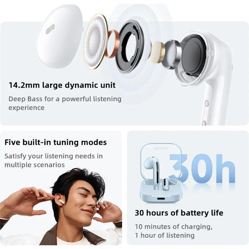 Ανθεκτικά στο νερό και εξοπλισμένα με την πιο πρόσφατη τεχνολογία Bluetooth 5.4, τα Redmi Buds 6 Active είναι ο ιδανικός καθημερινός σου σύντροφος για ήχο που ξεχωρίζει.